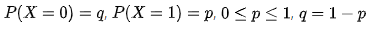 베르누이 분포는(Bernoulli distribution)은 매 시행마다 오직 두 가지의 가능한 결과만 일어난다고 할 때, 이러한 실험을 1회 시행하여 일어난 두 가지 결과에 의해 그 값이 각각 0과 1로 결정되는 확률변수 X에 대해서 다음을 만족하는 확률분포를 의미한다.