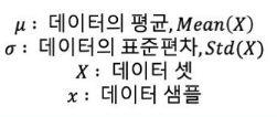 ---> 표준정규분포화 시켜 데이터의 평균이 0, 표준 편차가 1이 되도록 스케일링한다.