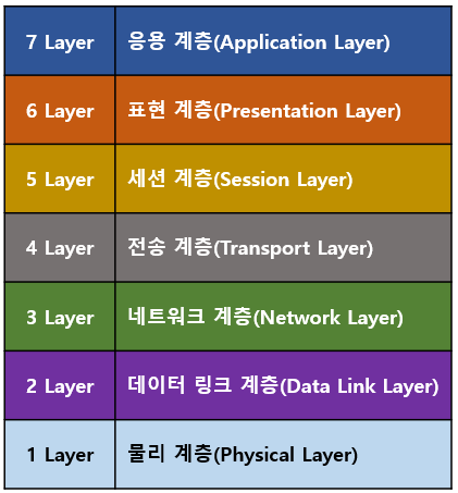 우선, 네트워크에서 통신이 일어나는 과정을 7단계로 나눈 "OSI 7계층"에 대해 살펴보자.